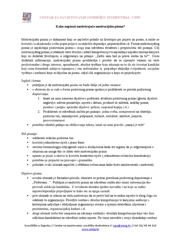 Kako Napisati Motivirajuce Motivacijsko Pismo Cg Pdf