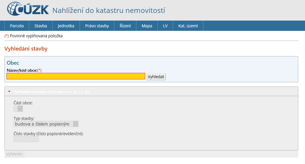 List vlastnictví můžete získat na katastrálních úřadech nebo na místech kde je Czech POINT. ZÁKLADNÉ INFORMÁCIE Z KATASTRA. Nelze vyhledat budovu podle popisného ani evidenčního čísla.