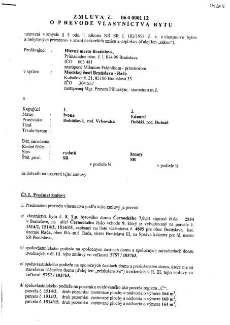 O vlastníctve bytov a nebytových priestorov v platnom znení. Byt pozostáva z. Kúpna zmluva o prevode vlastníckeho práva bytu.