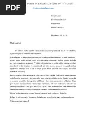 Motivacny list asistentka. Motivačný list je krátky popis dôvodov prečo má kandidát záujem pracovať pre danú spoločnosť prečo má záujem o danú pozíciu. 1 motivačný list 1 pracovná ponuka Mnoho uchádzačov sa snaží zjednodušiť si hľadanie práce. Sprievodný list samo hodnotenie ponúkame toho čo je u nás kvalitnejšie.
