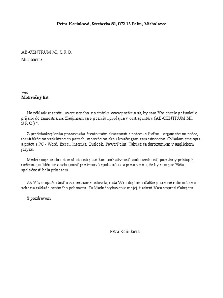 Ak sa nechávate inšpirovať rôznymi vzorovými motivačnými listami mali by ste si dávať pozor na to čo kopírujete. For more information and source see on this link. NÁLEŽITOSTI ŽIADOSTI O PRIJATIE DO ZAMESTNANIA.