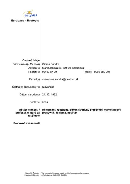 Štrukturovaný životopis - vzor.